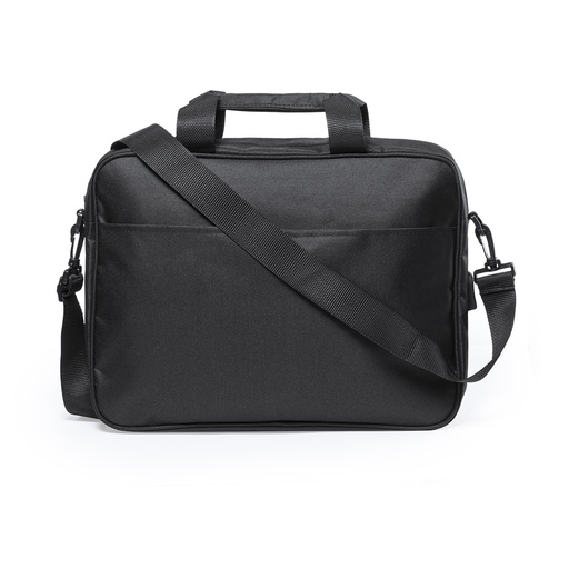5591 - Portadocumenti in resistente poliestere 600D con finitura nera e chiusura a zip. Con uscita per le cuffie e scomparto interno con uscita USB per il collegamento al powerbank - non incluso -. Con robusti manici rinforzati e accessorio sul retro per il fissaggio del trolley. Interno con scomparto imbottito per laptop fino a 15" e scomparto per tablet fino a 10". Con numerose tasche interne ed esterne e tracolla regolabile con chiusura a moschettone.